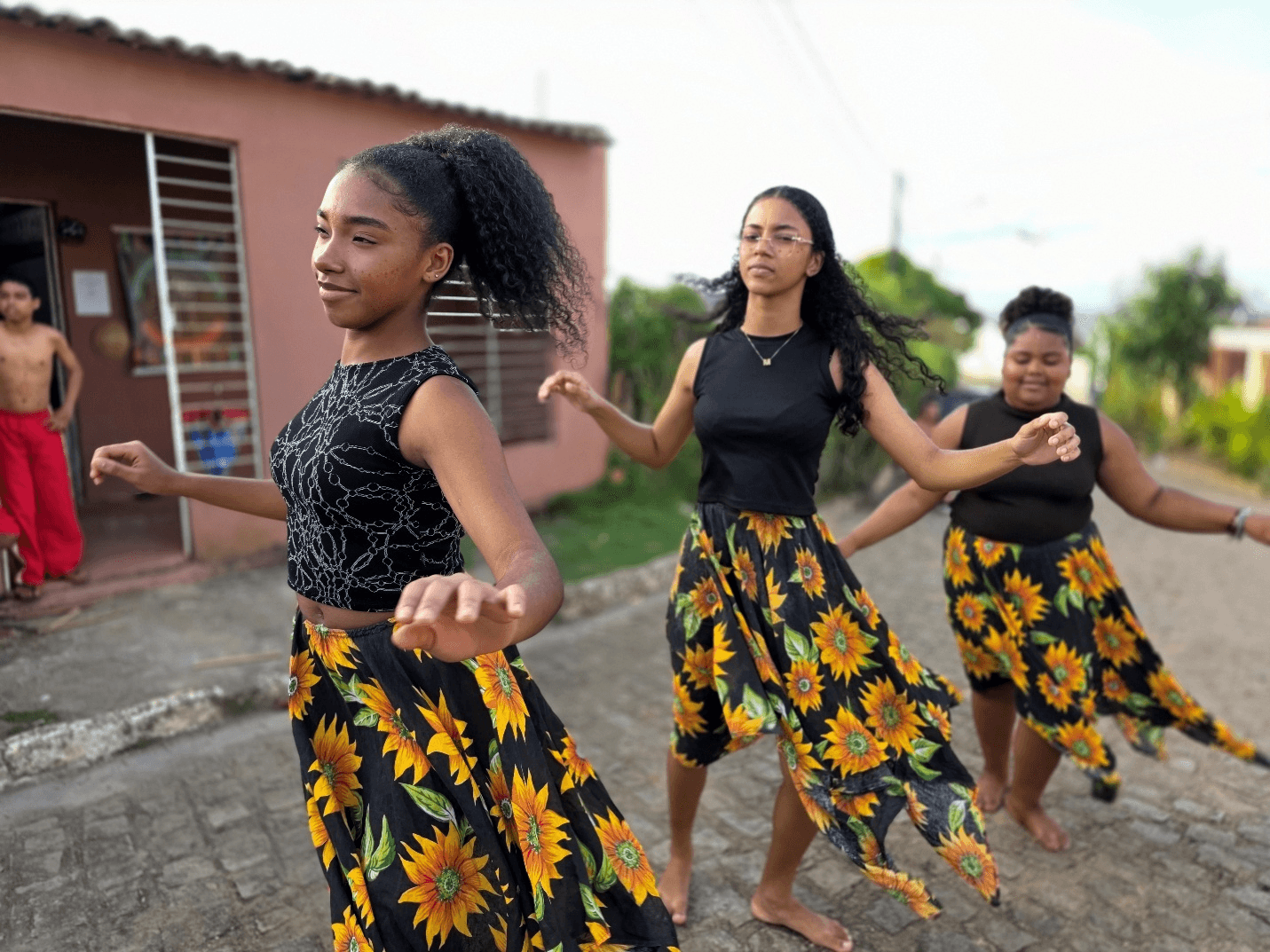 Dança afro-contemporânea que, por meio de vivências em maculelê e ciranda, valoriza a ancestralidade, fortalece a cultura local e impulsiona o protagonismo de jovens mulheres negras.