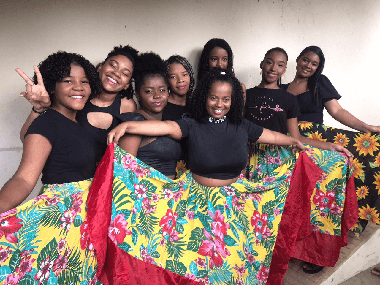 Processos colaborativos de montagem cênica (repertório, coreografias e trilhas), confecção de figurinos inspirados nas saias tradicionais e formação em produção cultural, comunicação e liderança para ampliar o protagonismo das jovens Dandaras.